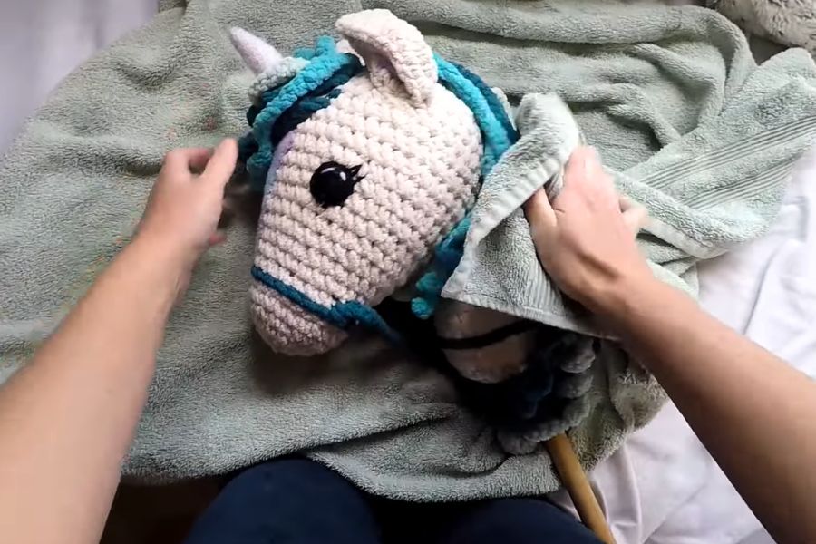 Jucăriile amigurumi se spală de preferință manual, cu apă călduță și săpun delicat sau detergent special pentru lână sau materiale sintetice. Este recomandat să le evitați spălarea la mașina de spălat pentru a preveni deformarea și deteriorarea cusăturilor. După spălare, jucăria se stoarce ușor prin presare, fără a răsuci, și se lasă să se usuce natural, evitând razele directe ale soarelui pentru a nu decolora culorile.
