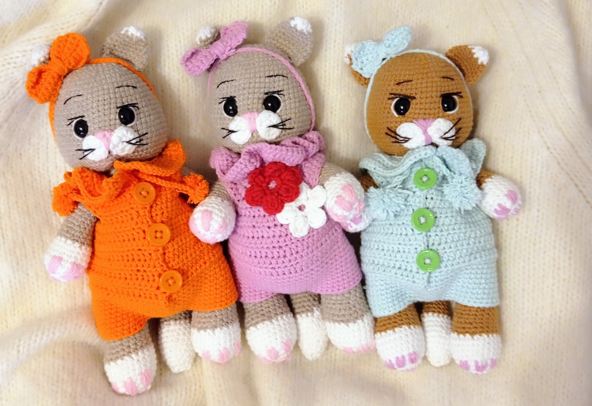 Pisicuță amigurumi croșetată manual, 25 cm | Jucărie bumbac-acril cu umplutură hipoalergică